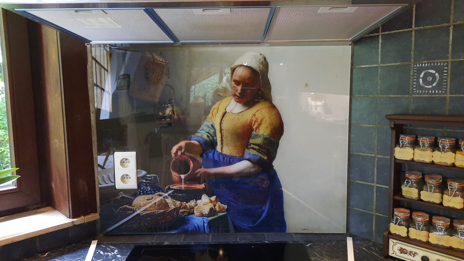 Achterwand met Melkmeisje van Johannes Vermeer