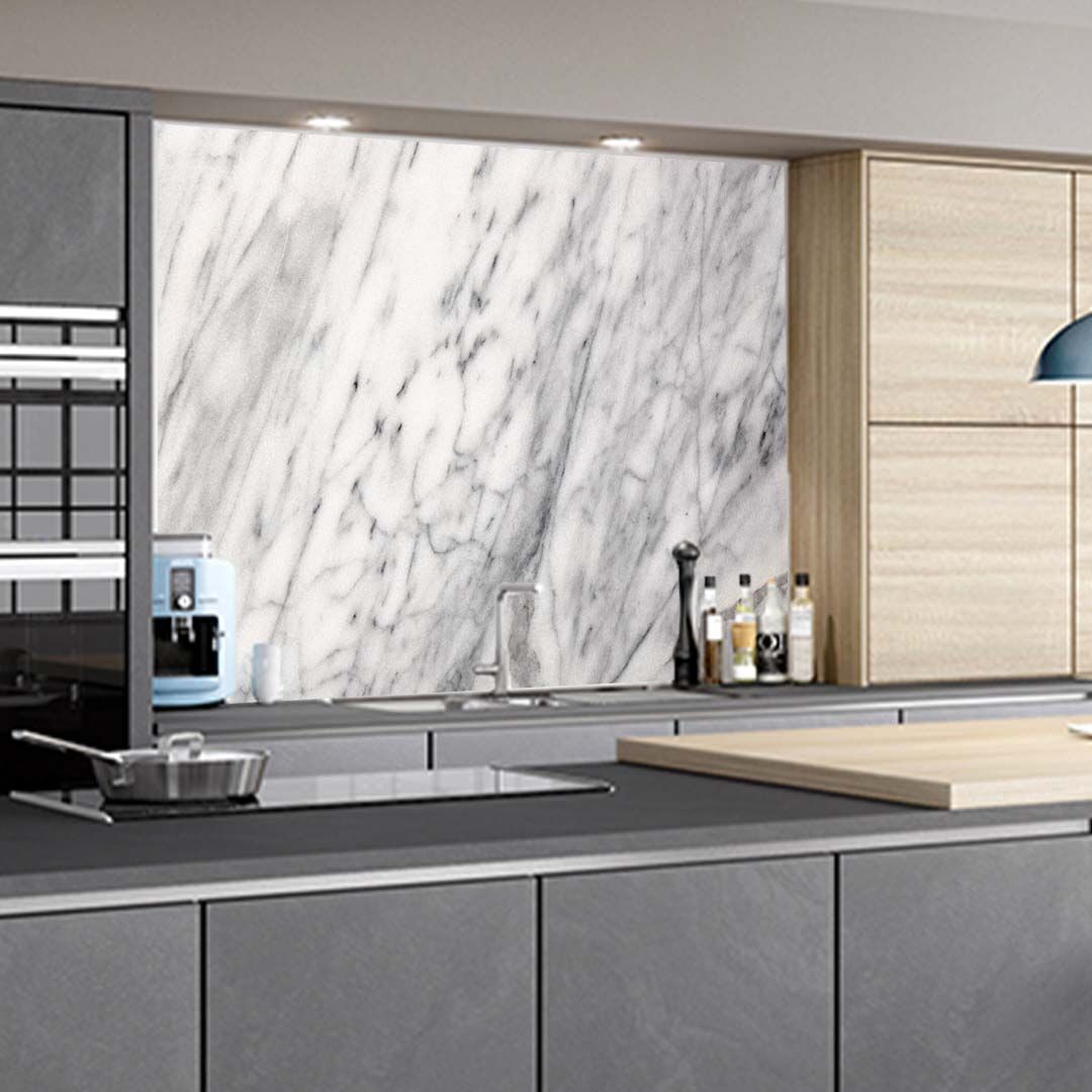 Achterwand met Marmer design wit-grijs