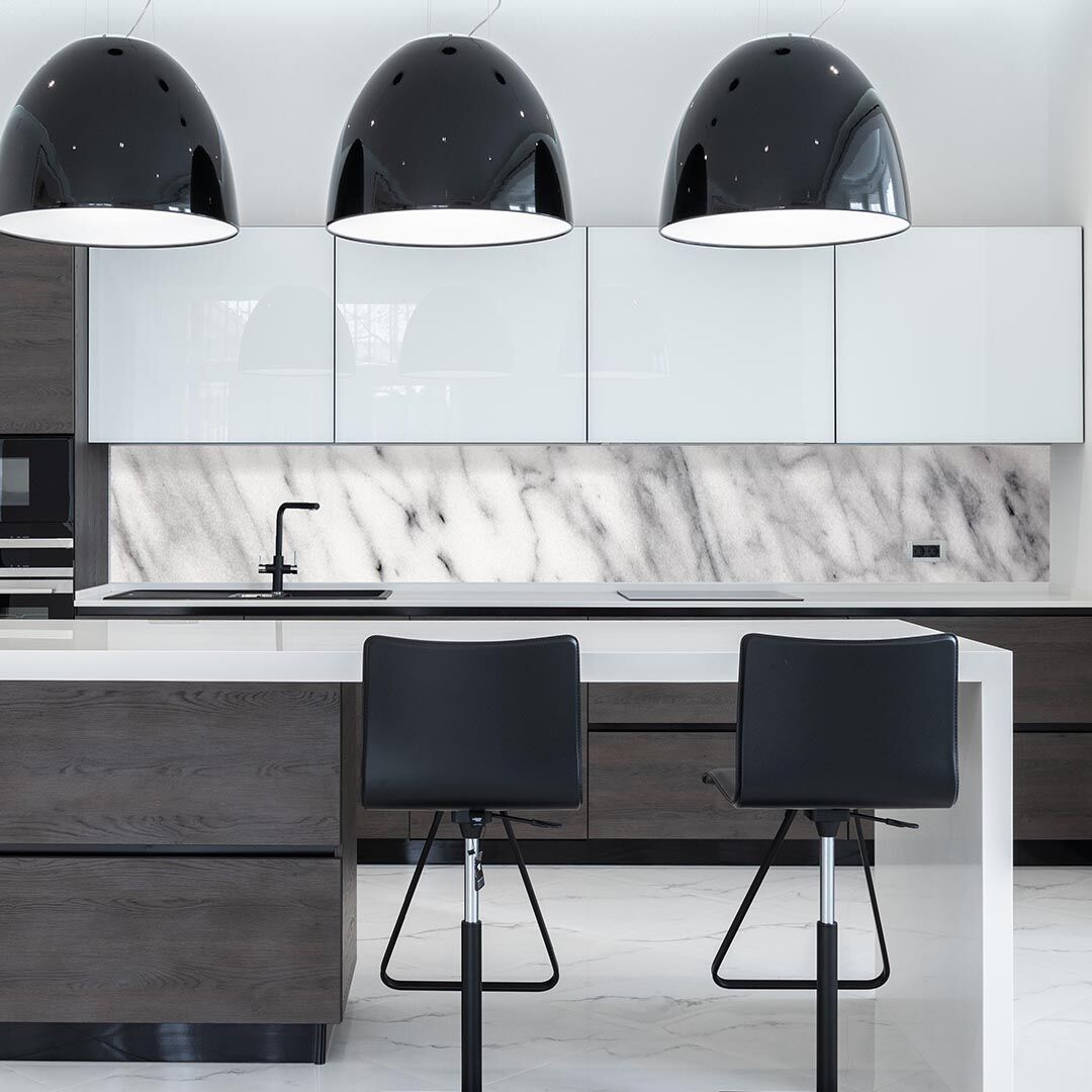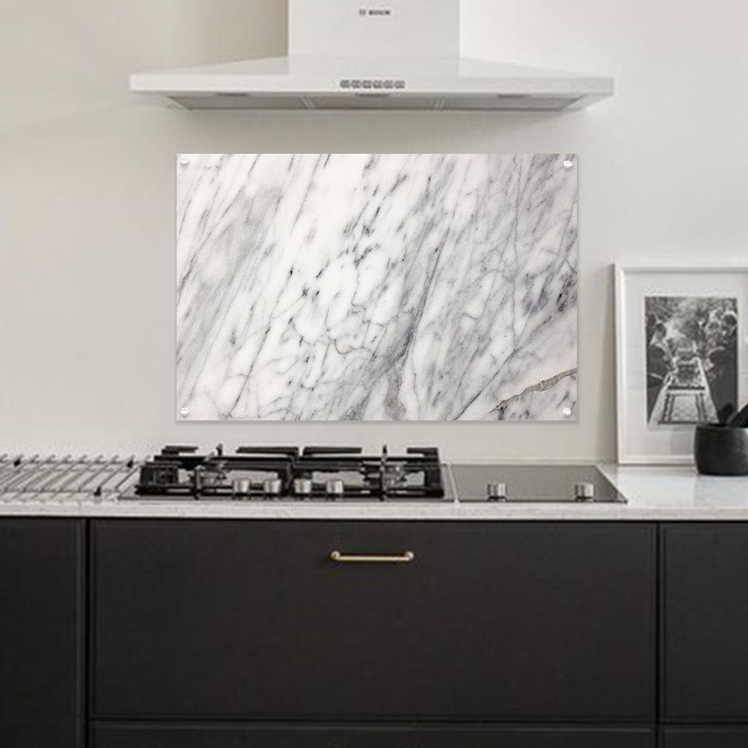 Hoe luxe wil je je keuken hebben? Een spatscherm of achterwand met marmerprint geeft je keuken een stijlvolle uitstraling. Ook leuk om te combineren met een inductie beschermer met hetzelfde design.