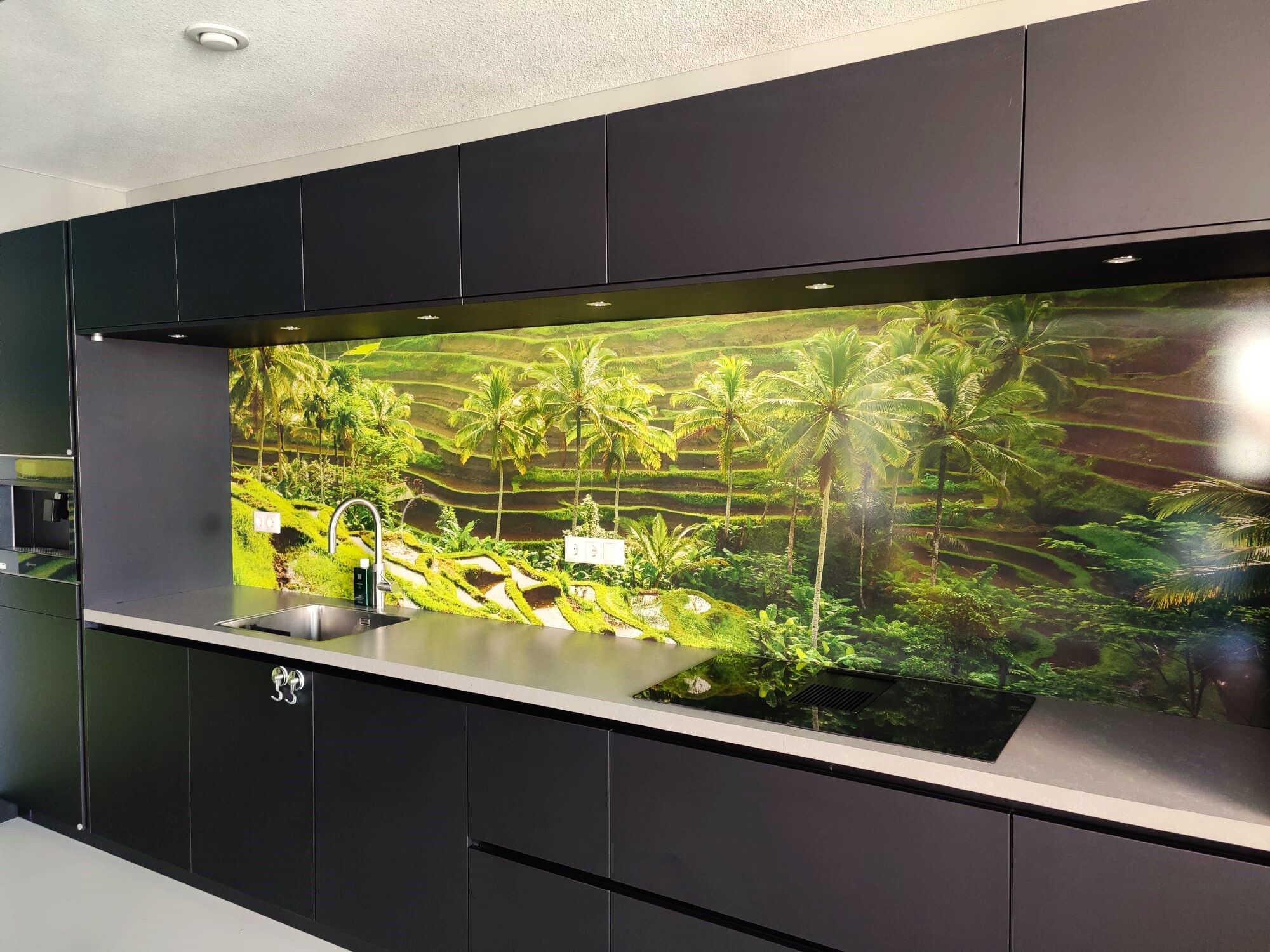 Deze keukenachterwand met Rijstvelden maakt je keuken bijzonder stijlvol.