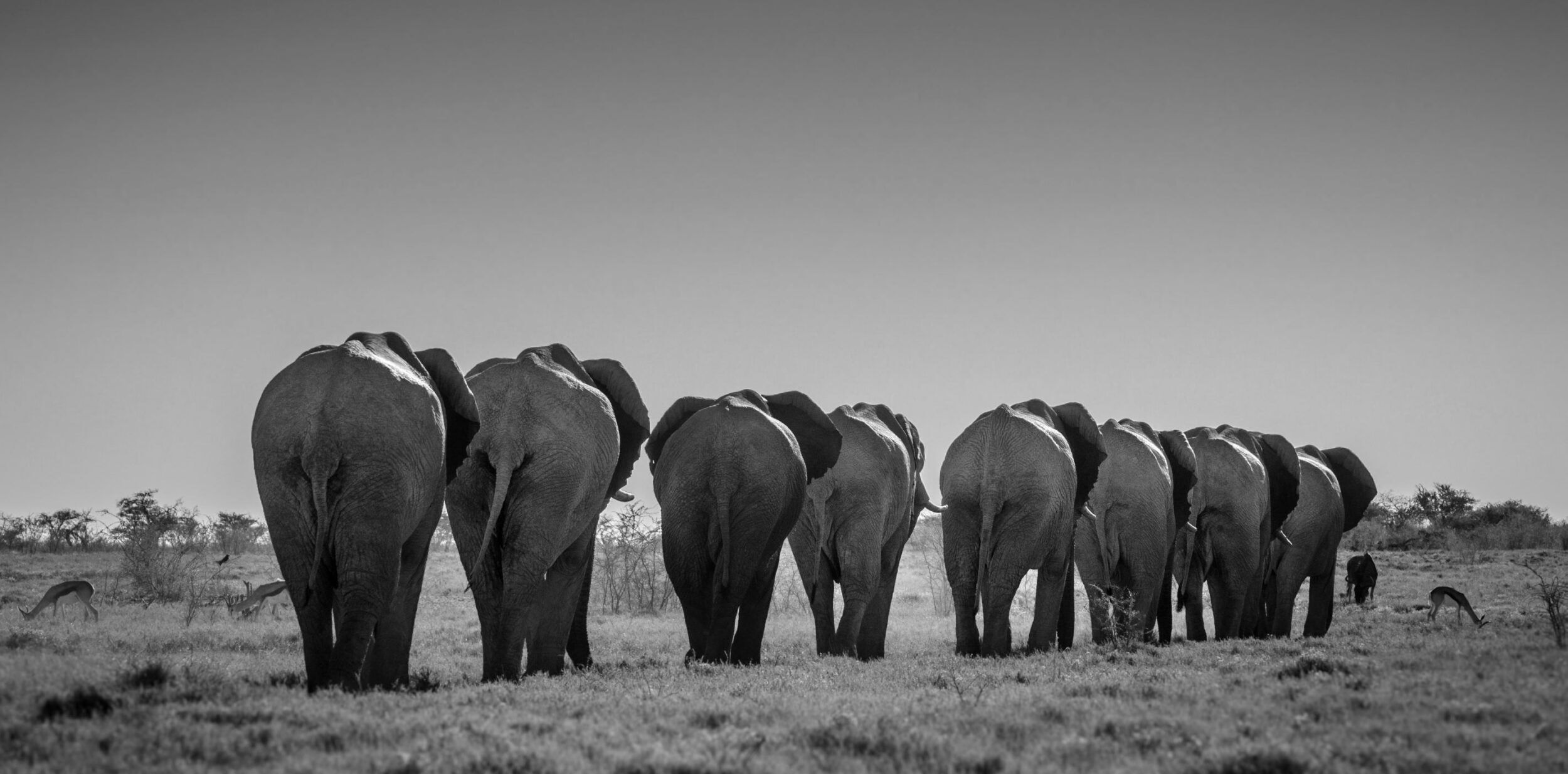 Dit zijn de billen van een kudde Afrikaanse olifanten. Aziatische olifanten hebben kleinere oren.