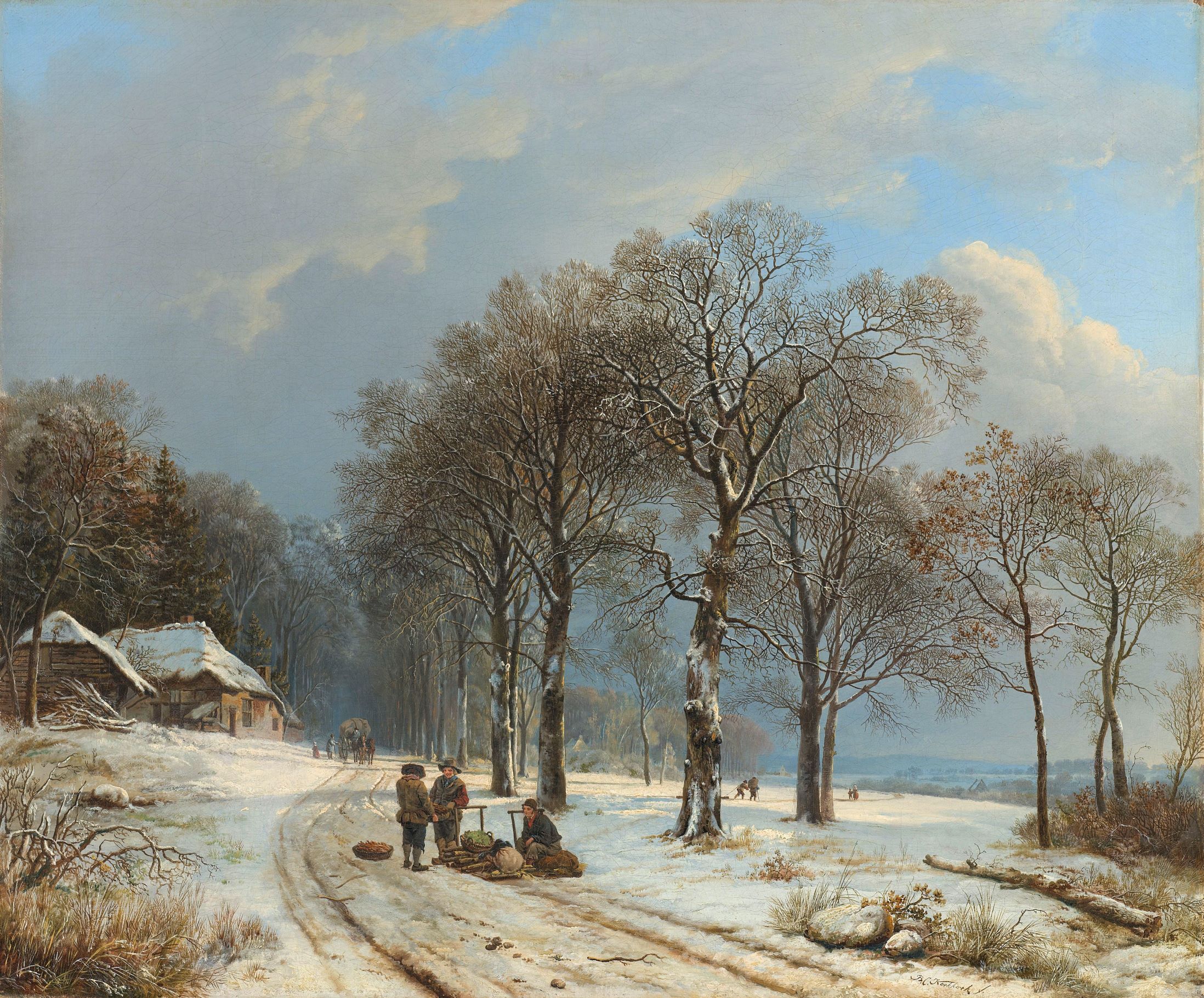 Voor dit winterlandschap koos Koekkoek een glooiend landschap in Gelderland of het Duitse gebied van de Nederrijn. Het schilderij toont de verstilde natuur op een winterse dag, een wereld bedekt met de zuiverheid van sneeuw. Koekkoek schilderde dit schilderij tussen 1835 en 1838.