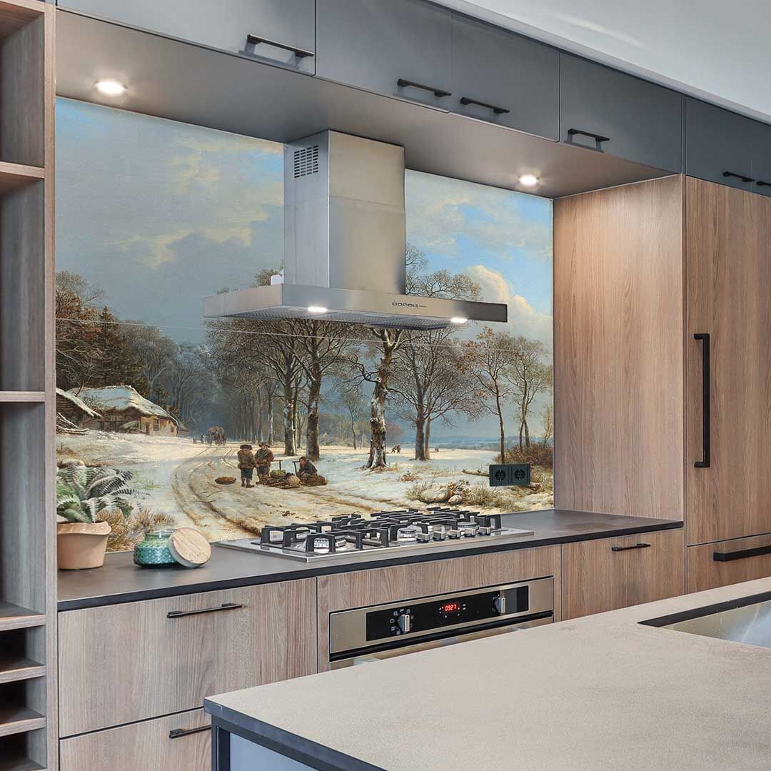 Spatwand met winterlandschap van B.C. Koekkoek